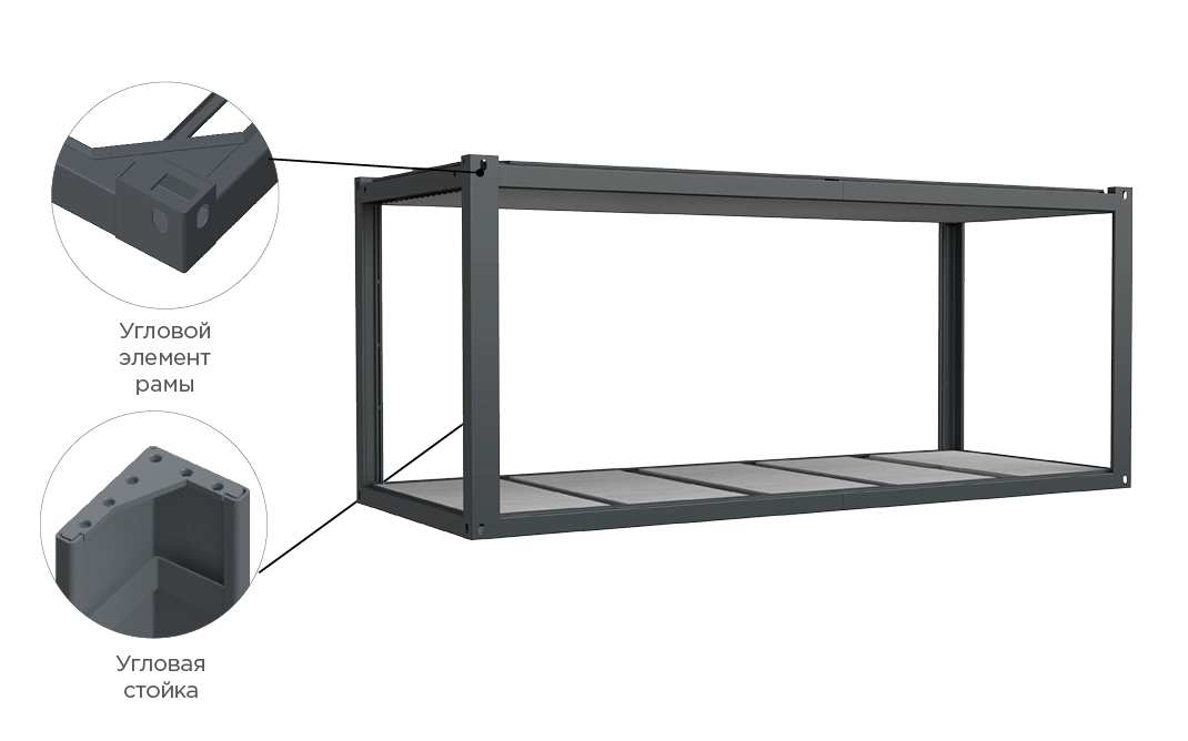 Использование прокатной технологии производства угловых стоек, швеллеров и профилей рам, а также горячекатаной стали марки СТ3 позволяет повысить качество и прочность модульного металлокаркаса.