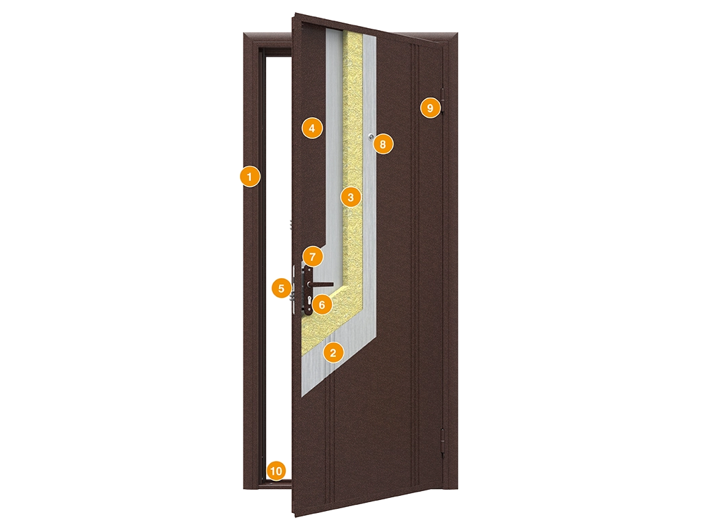 Дверной щит представляет собой “сэндвич” толщиной 60 мм с минераловатным заполнителем.