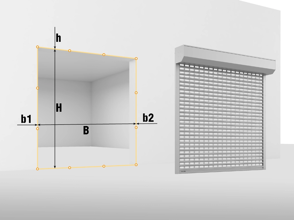 Накладной монтаж. Накладной монтаж встречается наиболее часто, для его выполнения не требуется трудоемкая подготовка откосов, связанная с подготовкой ниши под короб. При накладном типе монтажа рольставен или рольворот короб с роликовым полотном устанавливают над проемом, а направляющие профили – по обеим сторонам от него. Закрытые рольставни при этом полностью закрывают проем и находятся практически вровень с поверхностью стен.